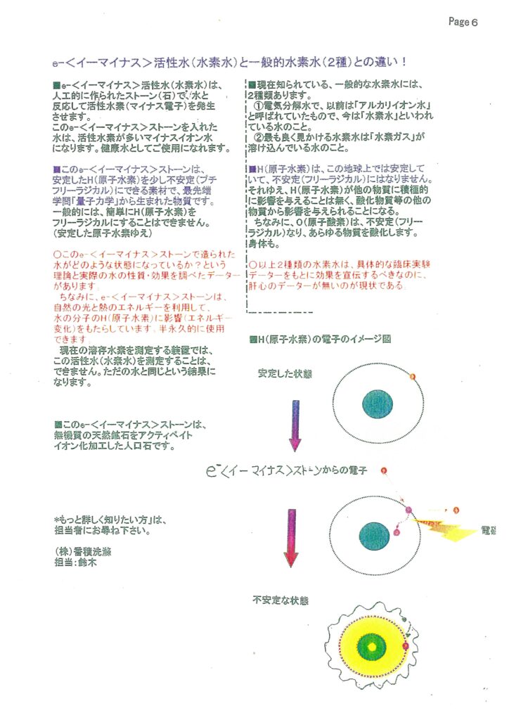 4.下記の資料Page6~8は、開発の先生がイーマイナスストーンで造られた水素水と一般的な水素水の違いについて書かれた資料
