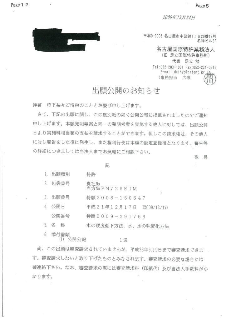 3.下記資料Page5は、開発協力会社が試しに特許を申請して、特許出願公開に なった書類です。